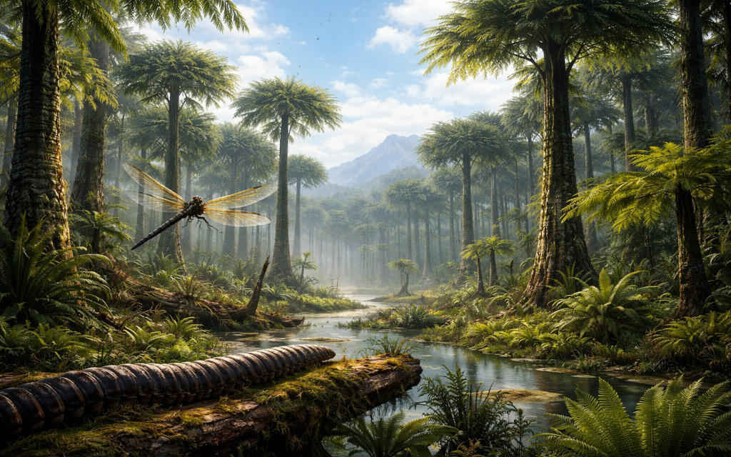 Însă dincolo de importanța sa economică, Carboniferul oferă o fereastră unică către o lume radical diferită de cea actuală: o planetă dominată de păduri luxuriante, insecte gigantice și niveluri de oxigen fără precedent.