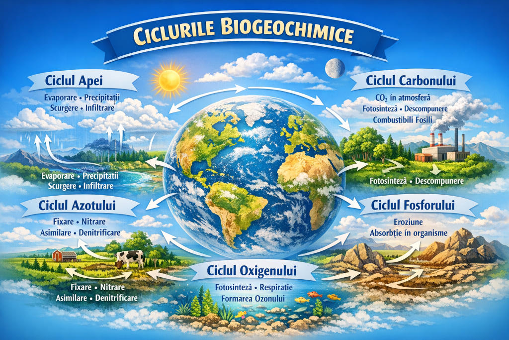 Ciclurile biogeochimice reprezintă infrastructura invizibilă care susține viața pe Pământ. Prin ele, apa, carbonul, oxigenul, azotul și fosforul circulă continuu între aer, apă, sol, roci și organisme vii, menținând funcționalitatea ecosistemelor și stabilitatea mediului planetar. Departe de a fi simple procese chimice, aceste cicluri sunt rezultatul unei coevoluții profunde dintre viață și planetă.