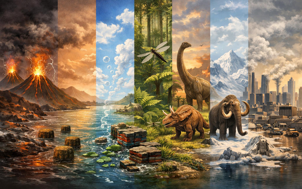 Atmosfera Pământului reprezintă unul dintre elementele fundamentale care au făcut posibilă apariția și menținerea vieții. Dincolo de rolul său protector împotriva radiațiilor cosmice și de reglare a temperaturii globale, atmosfera este un sistem dinamic, aflat într-o permanentă interacțiune cu litosfera, hidrosfera și biosfera. Compoziția atmosferei de astăzi este rezultatul unui proces evolutiv extrem de complex, desfășurat pe parcursul a peste 4,5 miliarde de ani.