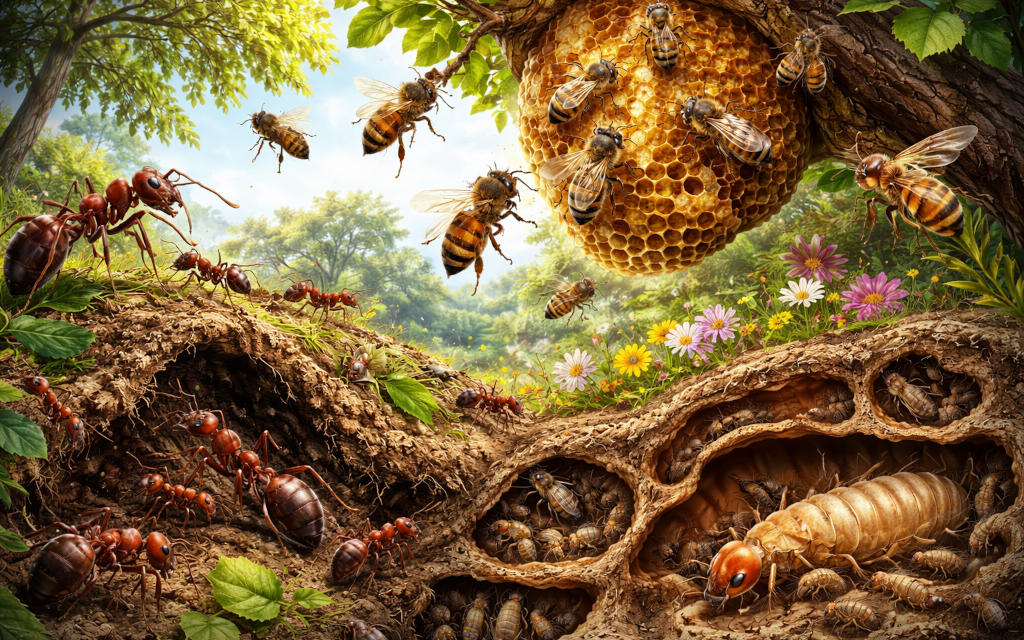 În vastul mozaic al biodiversității terestre, insectele ocupă un loc dominant nu doar prin numărul impresionant de specii, ci și prin complexitatea comportamentală pe care unele dintre ele au atins-o. Dintre acestea, insectele sociale reprezintă una dintre cele mai sofisticate forme de organizare biologică întâlnite în natură. Trăind în colonii bine structurate, cu diviziune strictă a muncii și sisteme avansate de comunicare, aceste insecte funcționează ca adevărate „superorganisme”, în care individul este subordonat colectivității.