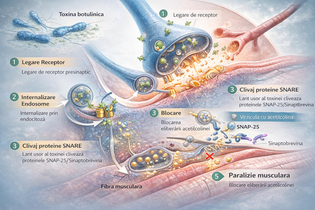 Modul de acțiune al toxinei botulinice la nivelul joncțiunii neuromusculare este un exemplu remarcabil de interferență moleculară extrem de specifică. Prin blocarea eliberării acetilcolinei, toxina întrerupe comunicarea nerv–mușchi, generând paralizie flască. Aceeași precizie biologică, responsabilă de severitatea botulismului, stă și la baza utilizării controlate a toxinei botulinice ca agent terapeutic în numeroase afecțiuni neurologice și musculare.