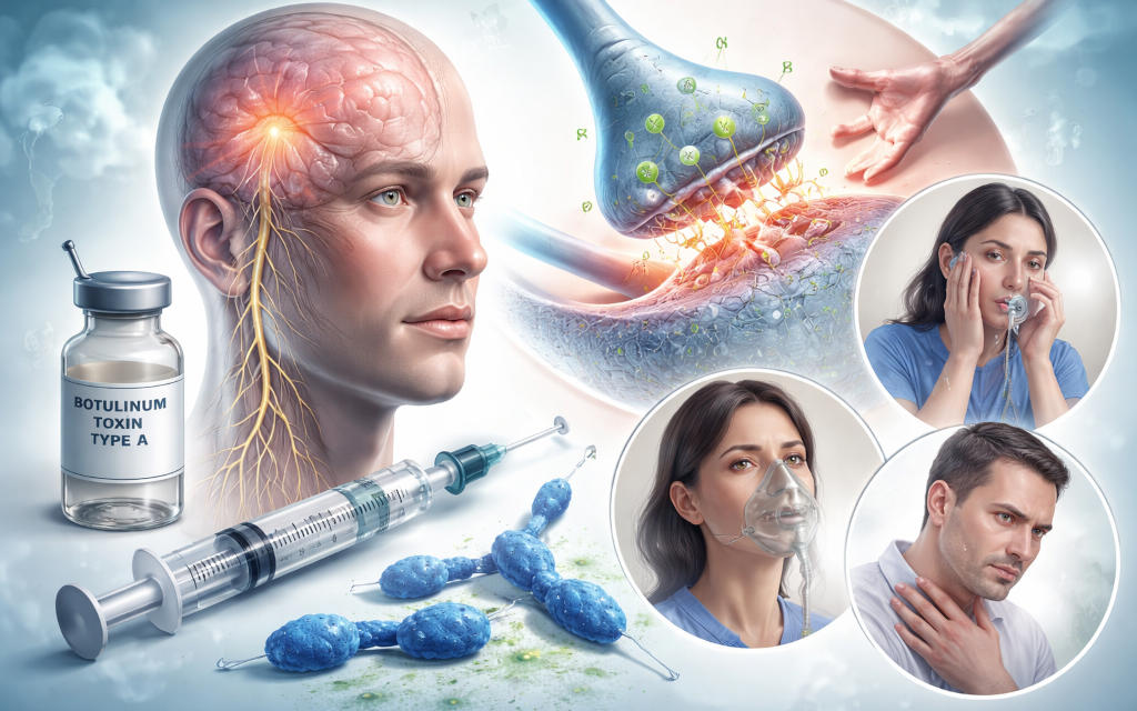 Toxina botulinică de tip A este utilizată în tratamentul unor afecțiuni neurologice și musculare, precum distoniile, spasticitatea post-accident vascular cerebral, blefarospasmul sau torticolisul spasmodic. De asemenea, este eficientă în reducerea hiperhidrozei (transpirație excesivă), a migrenelor cronice și a anumitor tipuri de durere neuropată.