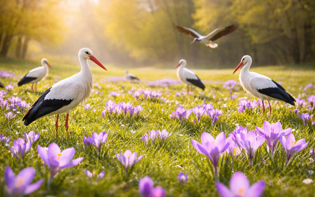 În spațiul românesc și european, vestitorii primăverii au o încărcătură simbolică puternică. Ghiocelul este asociat cu speranța, rândunica cu norocul gospodăriei, iar barza cu fertilitatea și reînnoirea.